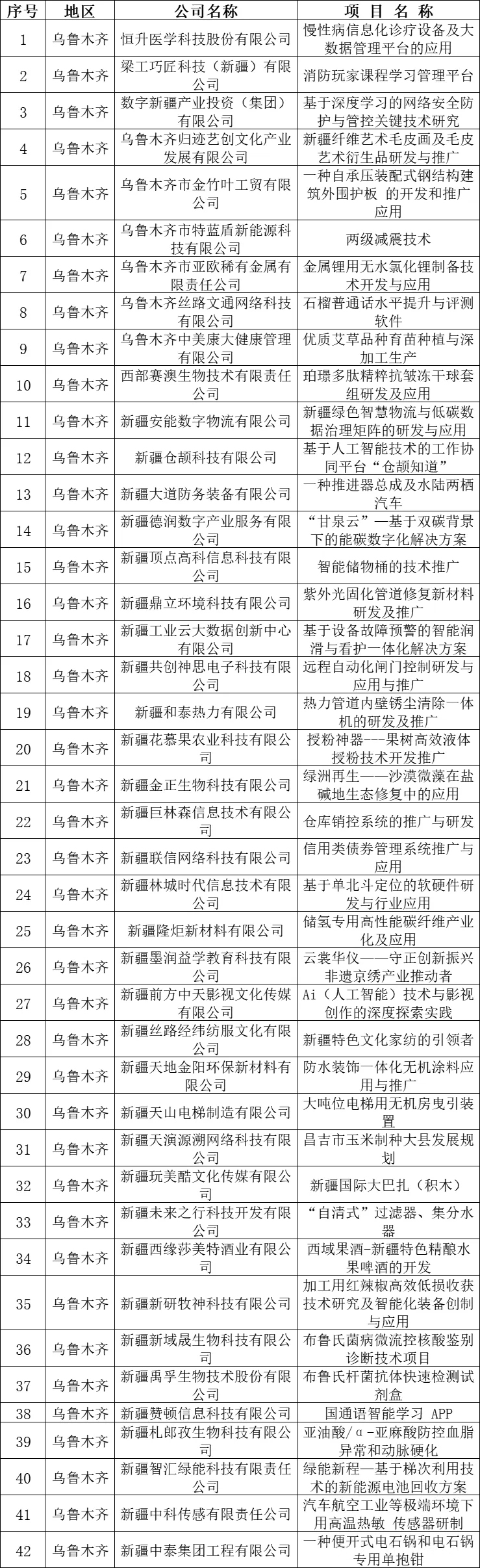 創(chuàng)客中國(guó)烏魯木齊預(yù)選賽入圍名單(企業(yè)組)